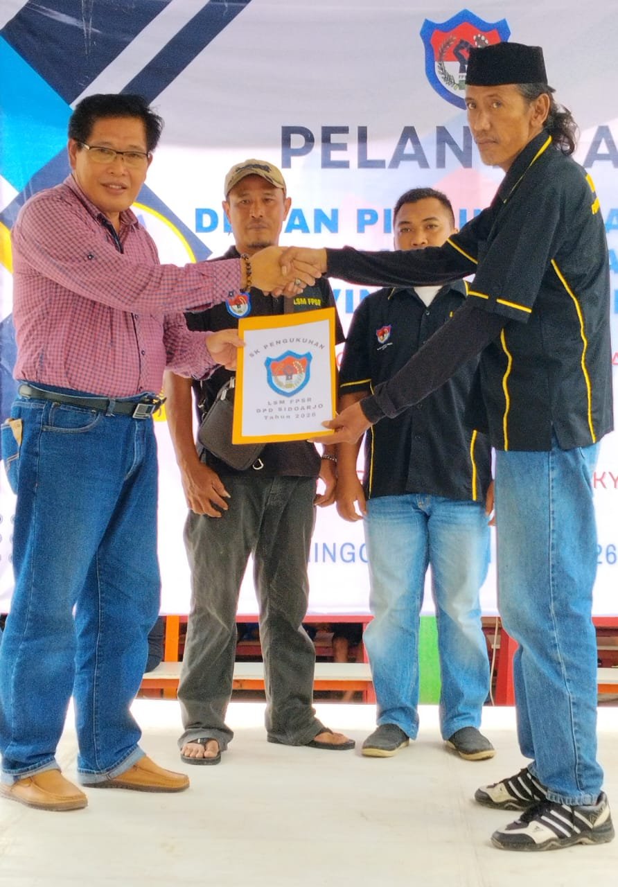 Setelah sambutan di lanjutan dengan penyerahan SK PENGUKUAN ( Simbolis ) yang di berikan oleh bapak Sekjen kepada Ketua terpilih. LSM FPSR DPD Sidoarjo ( Agus Harianto. SH ) , dengan penyerahan SK tersebut secara Hukum bahwa Agus Harianto SH , sudah resmi menjadi Ketua LSM FPSR DPD SIDOARJO, dengan membaca Bismillah bahwa pada hari ini Minggu tanggal 11 Januari 2026 saya nyatakan bahwa LSM FPSR DPD Sidoarjo, resmi di beri amanah .