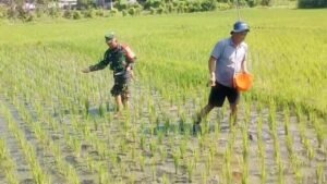 Serka Rudi Harianto menyampaikan bahwa pemupukan merupakan tahap krusial dalam siklus tanam untuk memastikan pertumbuhan padi yang optimal. “Kami ingin memastikan bahwa petani di wilayah binaan kami, seperti Bapak Sutopo, dapat melakukan perawatan tanaman dengan maksimal. Jika pemupukan dilakukan tepat waktu dan merata, kita berharap hasil panen nanti bisa melimpah sehingga kesejahteraan petani pun meningkat,” ujar Serka Rudi di sela-sela kegiatannya.