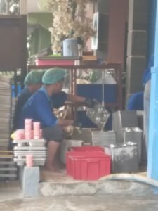 Di lokasi, hanya terlihat aktivitas mencuci food tray yang masih berlangsung.