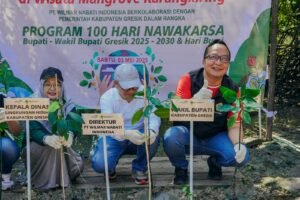 “Penanaman mangrove ini merupakan bagian dari kontribusi nyata terhadap target penurunan emisi gas rumah kaca, khususnya dari sektor blue carbon. Ini sejalan dengan Nawaksara, khususnya pilar Pesona Gresik yang mendorong pengembangan dan revitalisasi ekowisata,” ujarnya.