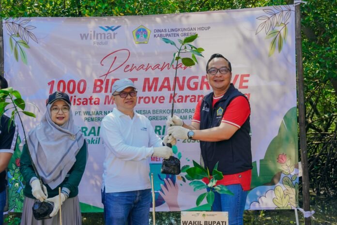 Radarnews9.com || Gresik , 3 Mei 2025– Pemerintah Kabupaten Gresik bersama PT Wilmar Nabati Indonesia menanam 1.000 bibit mangrove jenis Rhizophora mucronata di kawasan wisata mangrove Karangkiring, Sabtu (3/5). Kegiatan ini digelar dalam rangka memperingati Hari Bumi 2025 dan sebagai bagian dari pelaksanaan program 100 hari Nawaksara Bupati dan Wakil Bupati Gresik periode 2025–2030.