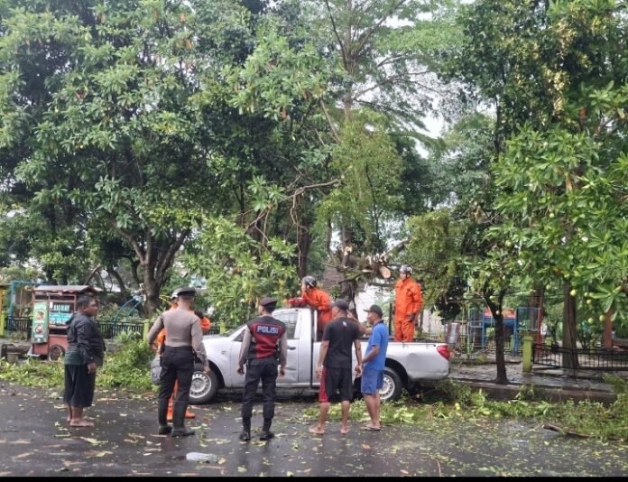 Radarnews9.com || Kediri Kota – Hujan lebat yang disertai angin kencang melanda wilayah Kota Kediri hingga menyebabkan sejumlah pohon tumbang di kawasan tersebut, sedikitnya ada tiga tempat pohon tumbang di laporkan sore ini di antaranya pohon tumbang yang melintang jalan Raya Raung tepatnya di depan SPBU Kecamatan Mojoroto, Area GOR Jayabaya, Simpang 3 Jetis dan di Jl Urip Sumoharjo Kota Kediri, pada Jumat (3/4/2026) sore.