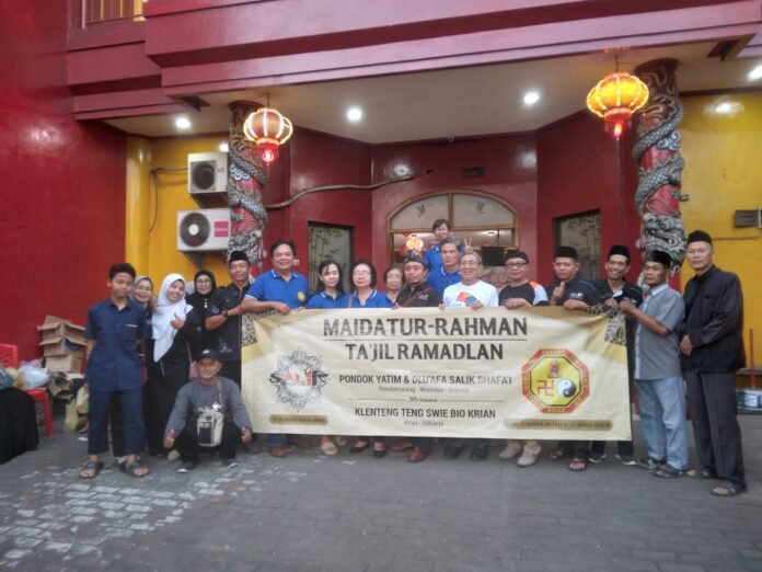 Radarnews9.com || Krian, Sidoarjo – Kegiatan berbagi takjil dan buka bersama digelar di depan Klenteng Teng Swie Bio Krian pada Rabu (11/3/2026). Kegiatan bertajuk “Maidatur-Rahman Ta’jil Ramadan” ini merupakan kolaborasi antara Pondok Yatim & Dhuafa Salik Shafa’i Simoketawang, Wonoayu dengan pengurus Klenteng Teng Swie Bio Krian sebagai bentuk kepedulian sosial di bulan suci Ramadan.