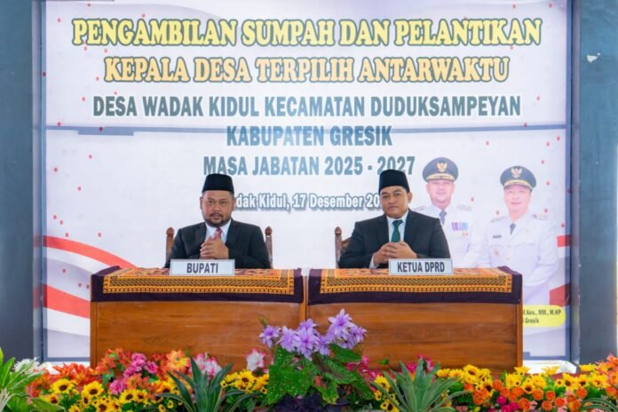 Radarnews9.com || Gresik, 17 Desember 2025 — Pemerintah Kabupaten Gresik menegaskan komitmennya memperkuat peran desa sebagai tonggak utama pembangunan daerah. Hal tersebut disampaikan Bupati Gresik Fandi Akhmad Yani dalam kegiatan pelantikan Kepala Desa Antarwaktu Wadak Kidul terpilih, Ashifur Rohib, Rabu (17/12).