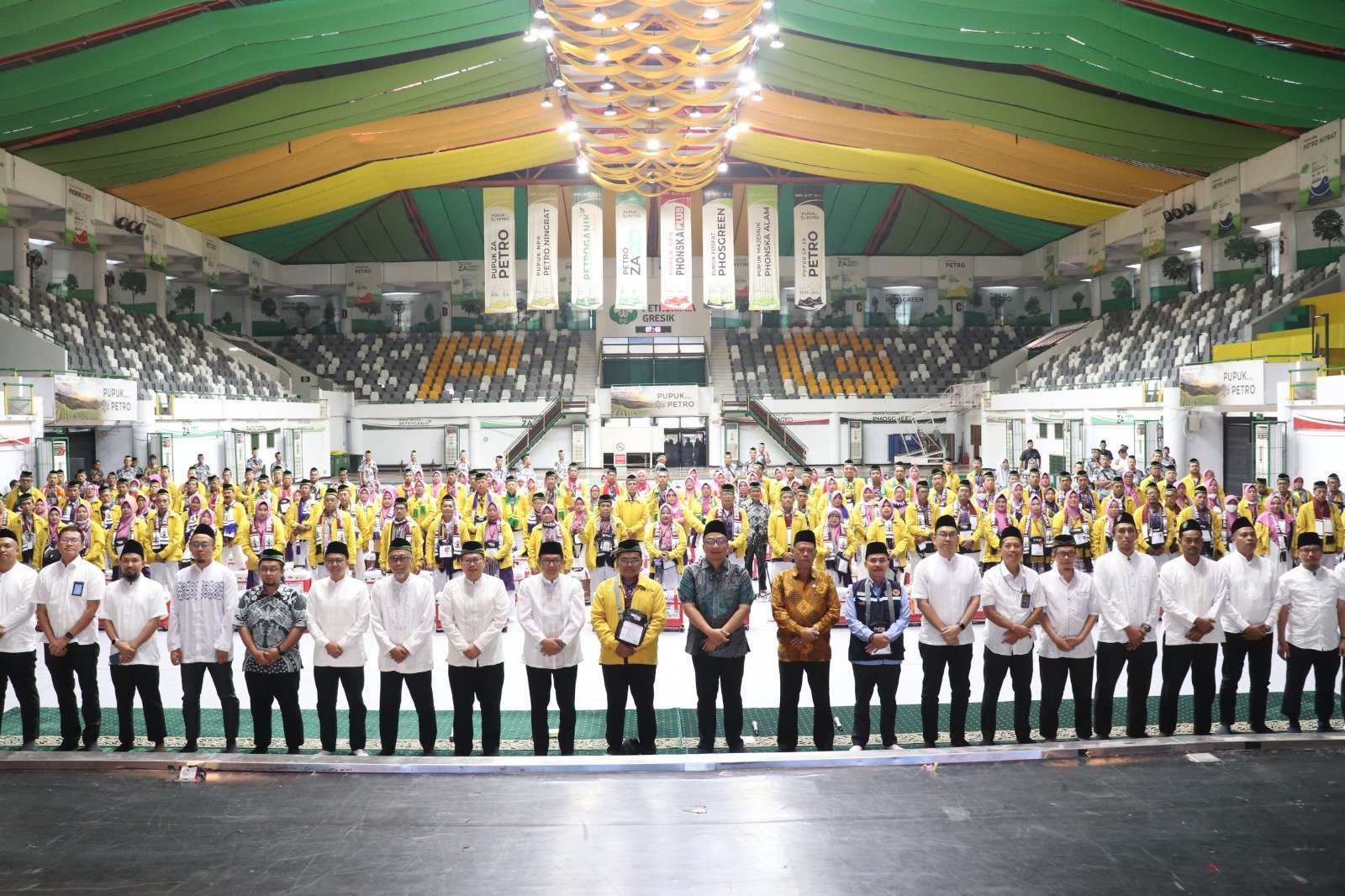Prosesi pelepasan ditandai dengan penyematan jaket secara simbolis oleh Penjabat (Pj) Bupati Gresik, dr. Asluchul Alif, kepada perwakilan jemaah, didampingi Direktur Utama PT Petrokimia Gresik, Dwi Satriyo Annurogo.