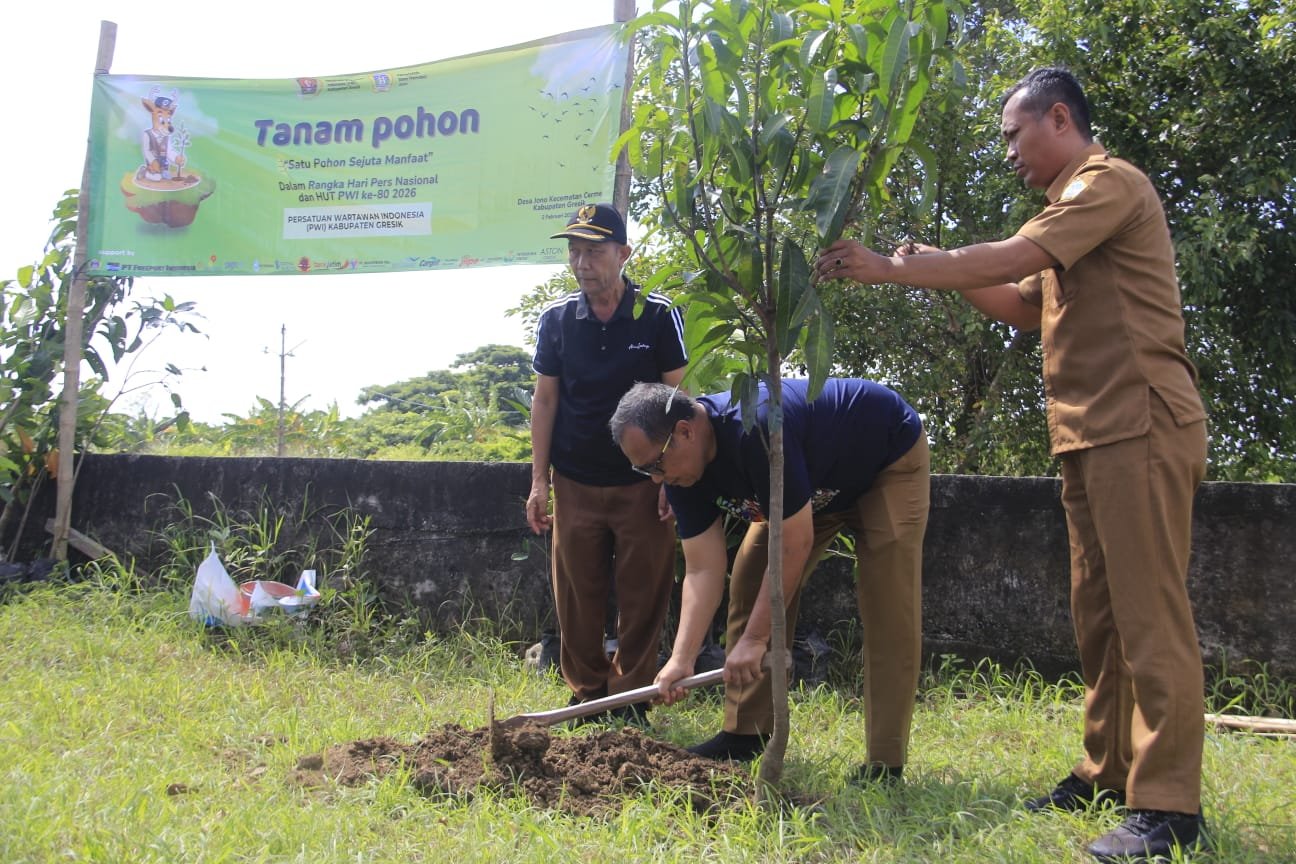Radarnews9.com || Gresik, 2 Februari 2026 – Pemerintah Kabupaten Gresik mengapresiasi aksi nyata pelestarian lingkungan yang dilakukan Persatuan Wartawan Indonesia (PWI) Kabupaten Gresik melalui penanaman ratusan pohon produktif di Desa Jono, Kecamatan Cerme, Senin (2/2). Kegiatan ini merupakan hasil kolaborasi lintas sektor antara PWI Gresik, instansi pemerintah daerah, serta perusahaan di Kota Pudak.