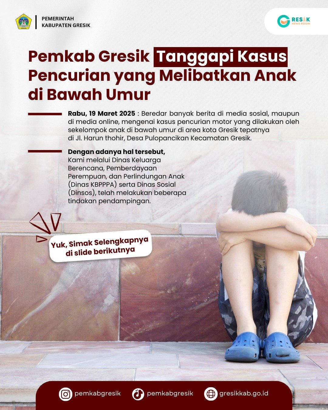 Radarnews9.com || Gresik, 19 Maret 2025 – Pemerintah Kabupaten (Pemkab) Gresik, melalui Dinas Keluarga Berencana, Pemberdayaan Perempuan, dan Perlindungan Anak (Dinas KBPPPA) serta Dinas Sosial (Dinsos), menanggapi dengan serius kasus pencurian kendaraan bermotor yang melibatkan anak di bawah umur.