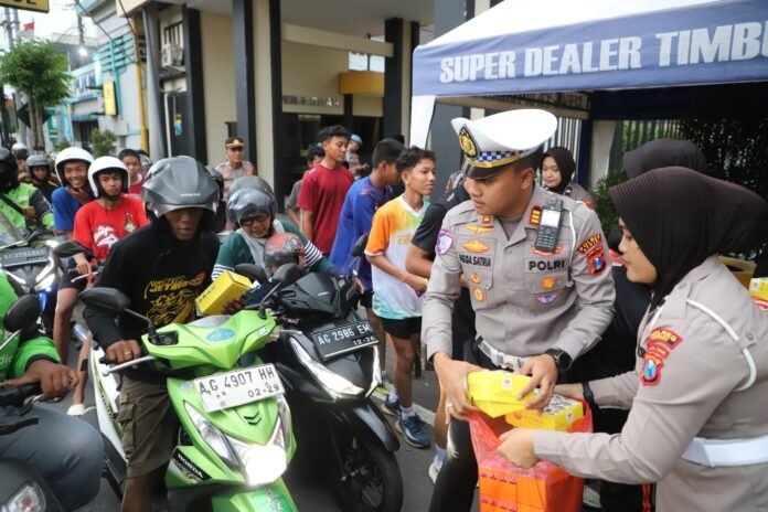Kegiatan sosial kali ini dipimpin langsung Kasat Lantas Polres Kediri AKP Mega Satriatama, S.Trk ,S.I.K., M.H. bersama anggota, mereka dengan penuh semangat membagikan ratusan paket takjil kepada para pengguna jalan, baik pengendara roda dua, roda empat, maupun pejalan kaki yang melintas di sekitar lokasi.