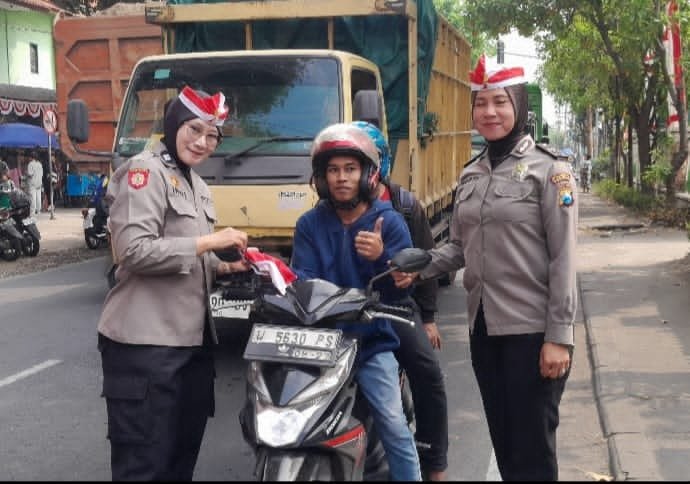 Radarnews9.com || Krian, Moment memperingati serta merayakan Hari Ulang Tahun Kemerdekaan Republik Indonesia ke 80 tak disangka umur Kemerdekaan Negara kita Republik Indonesia sudah beranjak tua, disinilah segenap seluruh masyarakat Indonesia identik harus mengibarkan Sang Saka Merah Putih,kali ini Polsek Krian dalam memperingati HUT RI kemerdekaan ke 80 berbagi bendera merah putih kepada pengendara roda dua dan pengendara roda empat yang melintas di depan Mako Polsek Krian, Kamis (7/8/2025).