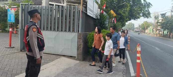 Radarnews9.com || Krian – Polsek Krian melaksanakan pengamanan kegiatan ibadah rutin mingguan sekaligus perayaan Hari Raya Maria Diangkat ke Surga di Gereja Katolik Santa Monica, Jalan Raya Ki Hajar Dewantoro No. 35 Krian, Minggu (10/8/2025) pagi. Ibadah yang dipimpin oleh Pastor Romo Katiran ini dihadiri sekitar 350 jemaat yang datang dari berbagai wilayah sekitar Krian.