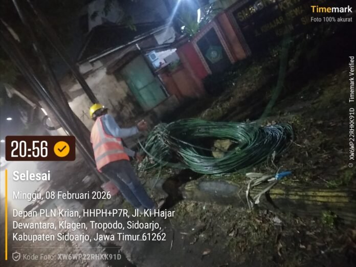 Radarnews9.com || KRIAN, SIDOARJO – Aktivitas pemasangan kabel fiber optik di wilayah Krian, Sidoarjo, semakin menuai sorotan setelah tim pelaksana di lapangan tidak dapat menunjukkan dokumen izin saat dimintai keterangan oleh warga dan perangkat setempat. Ketika ditanya terkait surat persetujuan dari desa atau kelurahan, pihak pekerja tidak mampu memperlihatkan dokumen tersebut di lokasi pekerjaan.