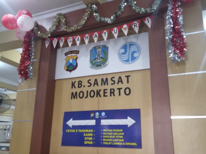 Radarnews.com || 14 Agustus 2025 Mojokerto — Kantor Sistem Administrasi Manunggal Satu Atap (Samsat) Kabupaten Mojokerto mendapat apresiasi positif dari masyarakat atas pelayanannya selama pelaksanaan Program Pemutihan Pajak Kendaraan Bermotor 2025. Program ini digelar sebagai bentuk keringanan bagi wajib pajak melalui pembebasan sanksi administrasi dan penghapusan denda keterlambatan.