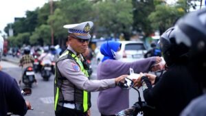 “Hari ini kami turun ke jalan bukan hanya untuk memastikan kelancaran arus lalu lintas, tetapi juga untuk menyapa masyarakat melalui berbagi kasih di bulan Ramadan,” ujar Ipda Andreas di sela kegiatan.