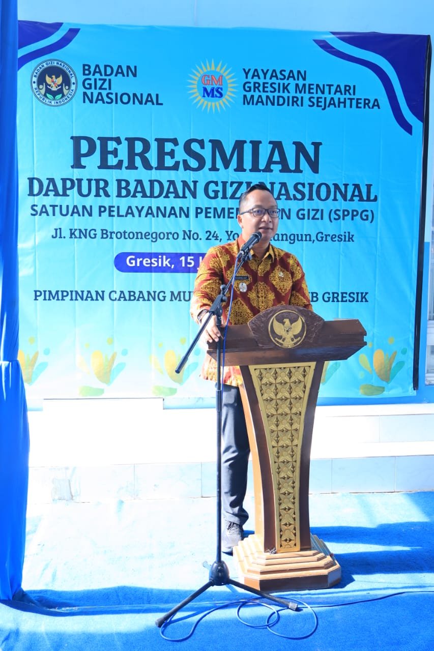 Gresik,Radarnews9.com – 15 Januari 2026 – Wakil Bupati Gresik, Asluchul Alif, meresmikan Satuan Pelayanan Pemenuhan Gizi (SPPG) Yayasan Gresik Mentari Mandiri Sejahtera (GMMS) Pimpinan Cabang Muhammadiyah (PCM) GKB Gresik, Kamis (15/01). Hal ini merupakan bagian dari penguatan layanan pemenuhan gizi masyarakat khususnya anak-anak usia sekolah, ibu hamil dan menyusui, serta balita. Menariknya, SPPG ini digerakkan oleh relawan yang sebagian besar berasal dari masyarakat setempat.