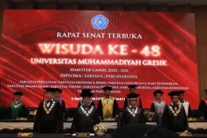 Sementara itu, Rektor Universitas Muhammadiyah Gresik, Khoirul Anwar, menyampaikan bahwa wisuda ke-48 ini merupakan momentum penting dalam menyiapkan lulusan yang tidak hanya siap kerja. Ia menambahkan, para lulusan juga diharapkan mampu berkontribusi dan beradaptasi di tengah perubahan zaman.